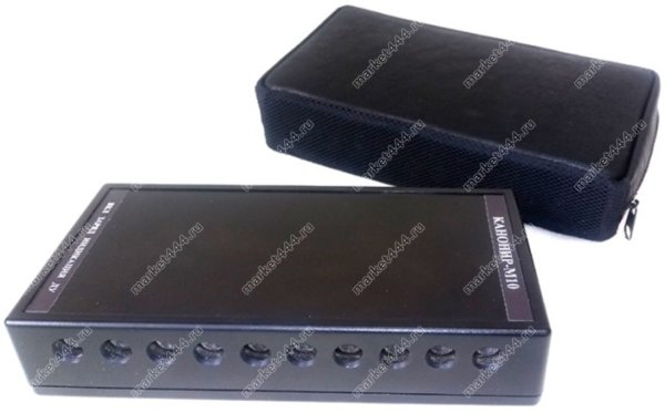 Представляем вашему вниманию камуфлированный подавитель диктофонов и микрофонов ""Канонир-М10"", который комплектуется маскировочным чехлом, позволяющим размещать устройство на видном месте. Мощная помеха создается десятью встроенными ультразвуковыми излучателями. Использовать прибор можно для защиты важной информации от утечки при проведении различных совещаний, переговоров, а также экзаменов, аттестации в учебных заведениях и т.д. Блокирующий сигнал без проблем проходит сквозь маскирующую ткань сумки-чехла. Действие прибора распространяется на микрофоны мобильных телефонов, включая современные смартфоны, а также диктофоны. УЗ излучатели создают направленную помеху усиленной мощности, которая стала возможна благодаря новой электронной схеме.